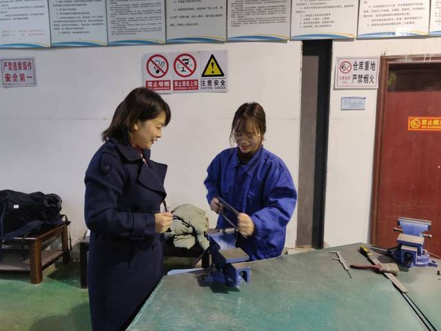 12月16日,机电工程学院党委副书记梁宝文、辅导员丁永剑老师来到金工实习中心看望实习学生并了解学生实习情况,强化安全教育。