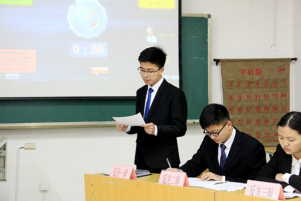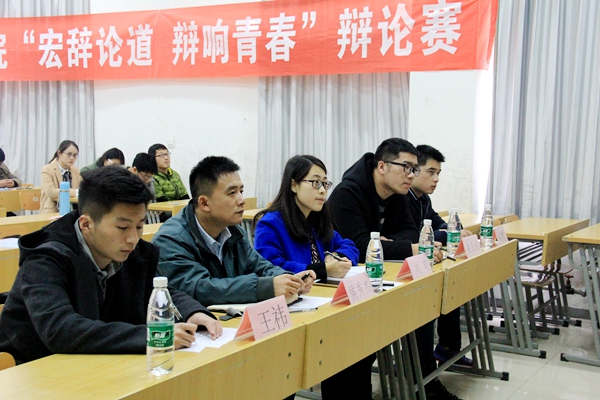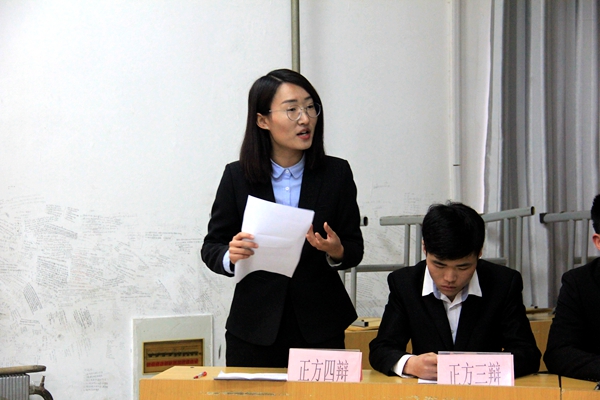3月22日下午,机电工程学院“宏辞论道,辩响青春”辩论赛决赛在田家炳工学院104C举行,院团委刘萌老师、侯秀杰老师、法学院学生会主席姜亚松、机电学院学生会主席王祎、副主席朱明担任评委,辩论赛由蔡睿主持。