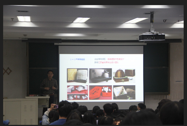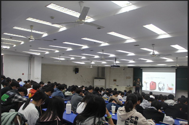 接着,宋端树老师列举一些工业设计案例,通过观看优秀工业设计,引导学生初步认识工业设计。然后,宋老师介绍了两条设计实践路径,一个是产学研结合,另一个是设计竞赛,同时向同学们介绍5个国内外工业设计大赛——IF、reddot、IDEA、G-Mark、红棉,鼓励新生通过参加大赛来锻炼自己提升能力。