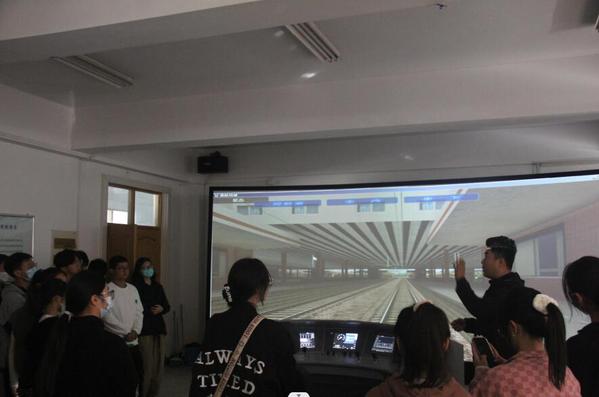 在智能制造实验中心,同学们参观了立体仓库运行、数控加工中心运行、数控车床运行、机器人/滑轨运行、装配机器人运行与三维检测站运行等自动运行流程,了解到CH50C数控车削中心与VMC850B数控铣削中心的机加工,现场感受到系统配置的磁条导航式AVG小车。该小车可以沿地面预铺设的磁条轨迹往返移动,用于立体仓库、机床、检测站和装配站之间运输零件与成品。在高铁虚拟仿真实验室,新生参观体验融合Web 3D技术和互联网技术研发出的动车组模拟驾驶、检修维护、故障诊断、结构装配等虚拟仿真实验教学资源。