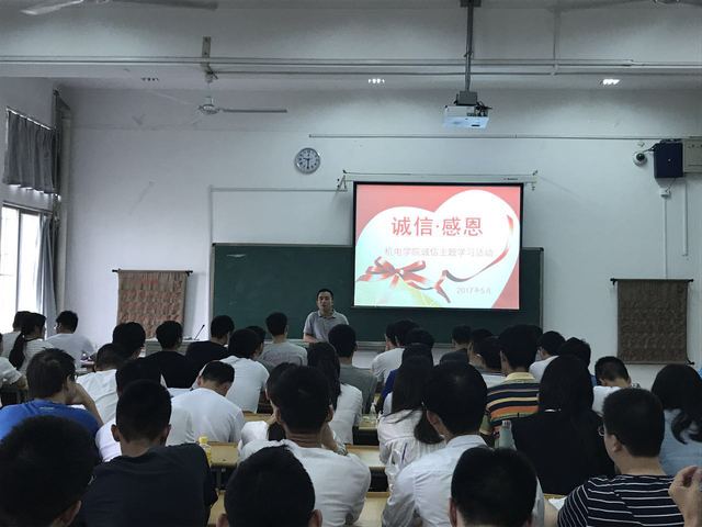 为加强大学生诚信感恩教育,增强受资助学生诚信、感恩意识,2017年5月31日上午,机电工程学院在12#101C开展“诚信、感恩”主题教育活动。本次活动由学院辅导员侯秀杰老师主持,学院全体受资助学生参加。