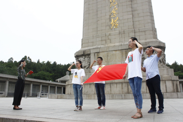 6月8日上午,教育学院2017年预备党员入党宣誓仪式在淮海战役烈士纪念塔前隆重举行,学院党委秘书李小刚老师和20余名新党员参加了本次活动。