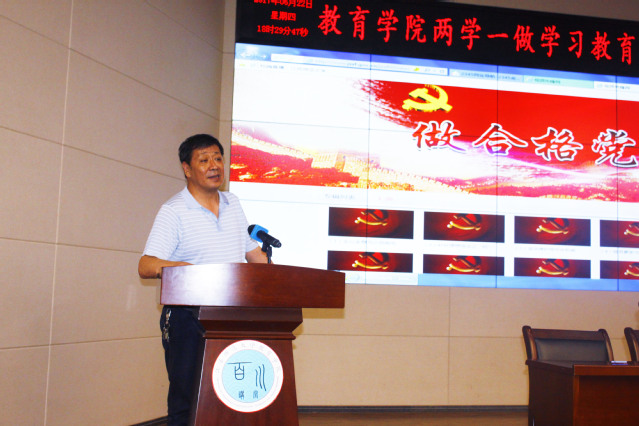 根据校党委关于“两学一做”学习教育的总体部署,为扎实推进学院“两学一做”学习教育常态化、制度化,6月22日下午,我院党委书记贾林祥教授为全体党员、预备党员及发展对象做了“两学一做”的专题党课,并启动了“远程教育固定学习”计划,观看了《做合格党员》的系列讲座。