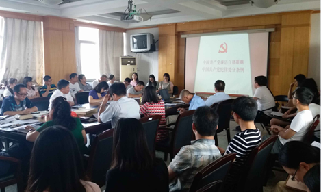 根据校党委关于“两学一做”学习教育的总体部署,为深入推进“两学一做”学习教育常态化、制度化,6月21日下午,机电工程学院党委在学院会议室开展了“两学一做”常态化制度化学习教育。机电学院全体师生党员共计60余人参加了本次学习活动。