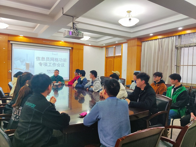为进一步推进网格化管理,畅通学生信息沟通渠道,机电工程学院4月6日召开信息员网格功能提升专项工作会议,辅导员严言老师及学院全体学生网格信息员参加此次会议。