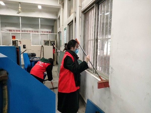 志愿活动开始,实验室邵老师为志愿者们细心讲解实验室清理的安全注意事项,布置实验室清理任务,并为志愿者们作现场示范。随后分组行动,志愿者们分别整理实验器材、分类处理垃圾、清洁实验台面以及打扫地面等等。在清理的过程中,志愿者们热情高涨,互帮互助,有的手持扫把、簸箕,打扫地面上的垃圾与卫生死角;有的手持抹布、擦拭桌面上的灰尘;有的则负责小心擦拭清理数控机床、电器元件等实验设备。经过志愿者们的努力,实验室被打扫得干干净净。