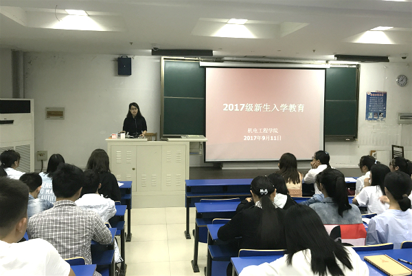 9月11日上午8:30,机电工程学院新生入学教育系列活动之一——“我为什么读大学”主题教育会在8#J104教室举行。辅导员刘萌老师、侯秀杰老师分别从我为什么读大学、如何适应大学生活、学生手册、校园安全、行为文明礼仪等方面为同学们进行主题教育。