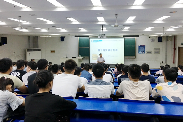 9月14日上午8:00,机电工程学院新生入学教育系列活动之五在8#J102举行,图书馆袁庆东老师为同学们作了“图书馆资源与利用”的专题讲座。