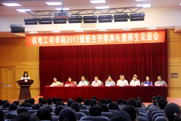 9月14日下午2:30,机电工程学院2017级新生开学典礼暨师生见面会在敬文报告厅隆重举行。院党委书记刘福义、院长邢邦圣、副院长马军、各系主任和书记、全体行政人员及195名本科生和研究生新生参加会议。会议由刘萌老师主持。