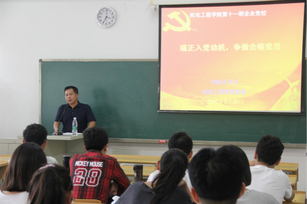 9月20日下午2:30,机电学院党委刘福义书记在工学院301C为我院第十一期入党积极分子作了题为“端正入党动机,争做合格党员”的专题讲座。