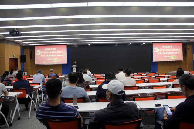 5月24日,机电工程学院在分析测试中心300开展了学习贯彻习近平新时代中国特色社会主义思想主题教育专题党课,学院全体教师党员参会,院党委书记何莉娜主持会议。