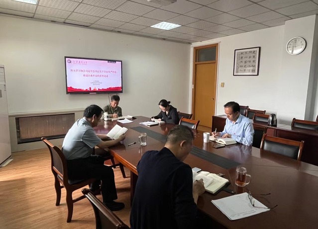 2023年6月5日上午,法学院党委组织开展理论学习中心组学习,深入学习贯彻《习近平总书记关于全面从严治党、推进党的自我革命重要论述》,会议由法学院党委书记张明新教授主持。