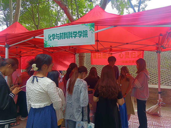 为提高学生情绪管理能力和心理健康水平,5月24-25日,由学工处主办,我院承办的第九届“心园百花绽放”心理健康教育特色活动之“夏日暖阳,心灵归港——情绪交换”活动在泉山校区至善路举行。本次活动以盲盒的形式为同学们提供了一个线下匿名倾诉平台,供同学们投稿,全校约400名学生参与了活动。
