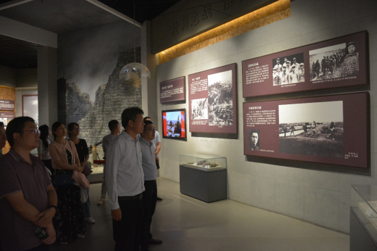 为扎实推进学习贯彻习近平新时代中国特色社会主义思想主题教育,牢牢把握“学思想、强党性、重实践、建新功”的总要求,凝聚党员干部思想共识,激发干事创业的奋进热情,化学与材料科学学院教工一支部党员在学院党委王香善书记带领下于6月3日下午赴淮海战役碾庄圩战斗纪念馆开展主题教育实境教学活动,强化思想引领,推动主题教育不断走深走实。
