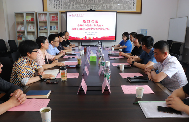 2023年6月7日上午,徐州市户部山(回龙窝)历史文化街区管理中心党委书记、主任洪慧颖一行来我院交流座谈,学院部分领导班子成员及旅游管理系、文化产业管理系、考古与文物修复实验室相关负责人出席了本次会议。