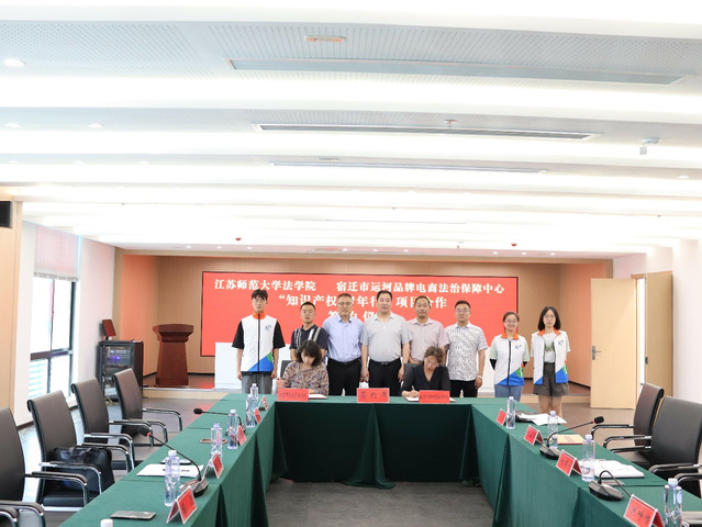调研结束后,宿迁市运河品牌电商法治保障中心与江苏师范大学法学院进行了“知识产权·青年行”项目合作举行签约仪式。双方将共同对电子商务中涉及的知识产权法治保障问题展开全方位合作。江苏师范大学法学院、江苏师范大学知识产权发展发展研究院、江苏省知识产权培训(江苏师范大学)基地将利用自身的智力优势,继续在商标保护、专利保护、反不正当竞争等领域,为相关电商经营者提供知识产权创造、运用、保护、管理、服务等方面的智力支持。未来,双方将继续探索内容新颖、形式多样、融合发展的知识产权文化传播新途径。
