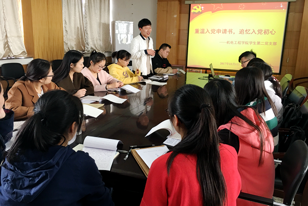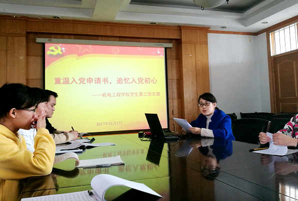 11月1日下午13:30,机电学院学生第二党支部在12#606A会议室开展了“重温入党申请书,追忆入党初心”主题党日活动,活动由党支部书记刘萌老师主持,全体支部成员参加了活动。