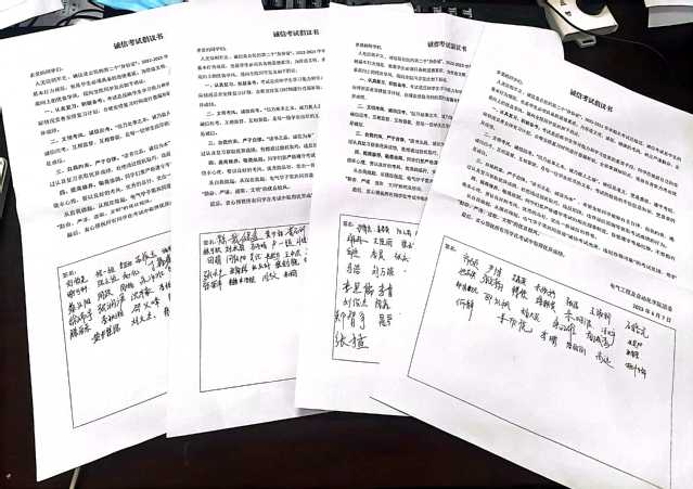 为加强学风建设,进一步端正大学生考试态度,杜绝考试作弊现象的发生,学院开展诚信考试主题教育。活动中,各班结合实际案例,认真学习了《江苏师范大学本科学生违纪处分规定》中违反考试纪律的处分办法,帮助同学们充分认识诚信考试重要性,以正确的心态迎接考试,踏实复习,遵规守纪,认真考试,从自身做起,杜绝考试违纪行为。同时,各班还学习了《电气学院诚信考试倡议书》,每位同学在倡议书上承诺签字。