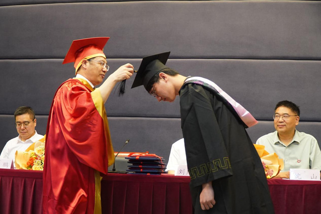毕业典礼上,周汝光校长为2023届毕业生代表颁发毕业证书、授予学士学位。