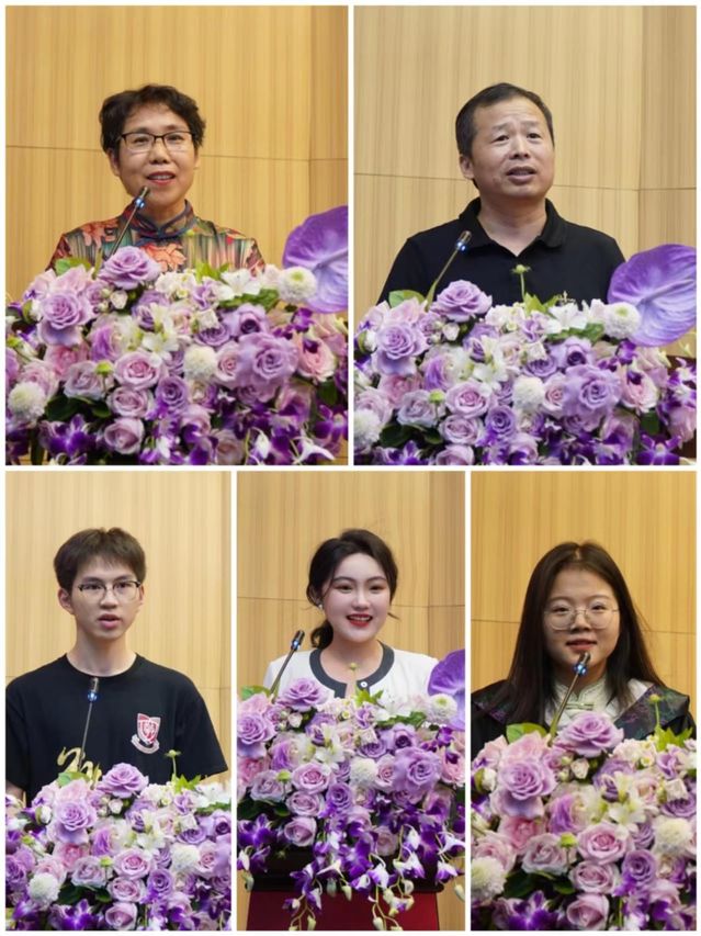 毕业生代表19级数学师范班张译丹,非毕业班学生代表20级英语师范班乔楷,优秀院友代表南京邮电大学教师齐沁儿,家长代表19级汉语言文学师范班刘芯阳同学的父亲刘勇同志,导师代表文学院王淑梅教授依次发言。