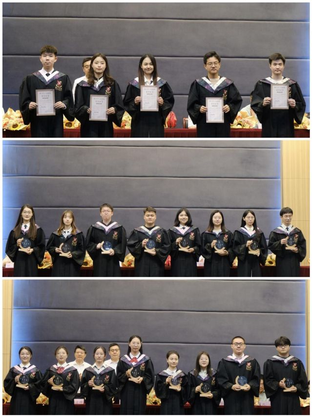 教务处赵鹏处长为荣誉院生代表颁发“敬文书院荣誉证书”。 赵鹏处长、朱景坤书记、沈山院长、石岭副处长分别为获得“道德之星”、“博雅之星”、“科技之星”和“管理之星”荣誉称号的16名毕业生颁奖。