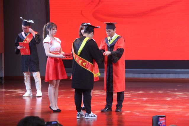 江苏圣理工学院-中俄学院院长李延龄宣读了《江苏圣理工学院-中俄学院关于表彰2023届本科优秀毕业生的决定》。副校长董晓臣为毕业生代表授予学位证书并拨穗。