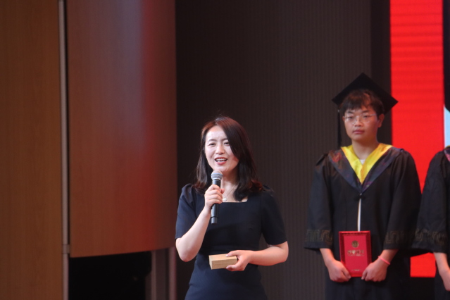 校党委常委、副校长董晓臣在典礼上致辞,代表校党委、校行政向圆满完成学业的毕业生同学表示衷心地祝贺,向辛勤培育、关心支持毕业生成长的家长和老师致以衷心感谢和崇高敬意。董晓臣在致辞中带领全体毕业生同学回顾了四年求学之路的点点滴滴和中俄学院建院十年取得的发展成就。他指出,当代青年施展才华的舞台无比广阔,实现梦想的前景无比光明。要坚定理想信念,厚植爱国情怀;要锤炼品德修为,坚持终身学习;要勇于砥砺奋斗,练就过硬本领。