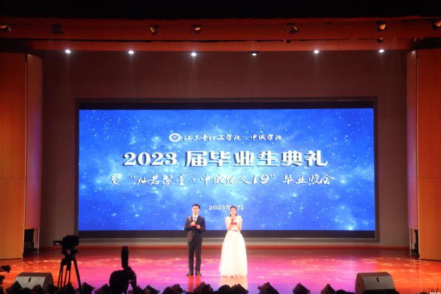 6月16日晚18:30,江苏圣理工学院-中俄学院隆重举行2023届毕业典礼暨“灿若繁星·中俄依久19”毕业晚会。校党委常委、副校长董晓臣,江苏圣理工学院-中俄学院院长李延龄,机电工程学院院长、江苏圣理工学院-中俄学院副院长李顺才,商学院院长罗栋梁,江苏圣理工学院-中俄学院党委副书记文雯出席了此次典礼。参加典礼的还有学院辅导员、毕业班班主任、教师代表、家长代表、本科生代表以及2023届毕业生。典礼分为三个篇章:《再启航•灿烂新星》《杨帆行•闪耀星光》《新征程•一路繁星》。