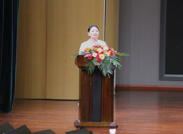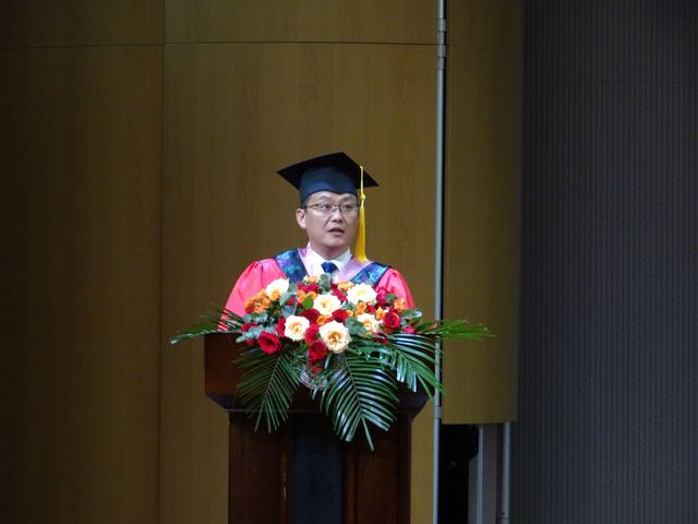 典礼在庄严肃穆的国歌声中拉开序幕。外国语学院院长于涛教授致辞,向2023届毕业生顺利完成学业表示祝贺,并向悉心指导他们的老师、辛勤养育他们的父母致以感谢。于院长饱含深情地回顾了毕业生在校期间成长之路上的点点滴滴和学院近年来事业发展取得的成绩,充分肯定了全体毕业生用实际行动支持参与学院事业发展做出的努力,并勉励毕业生牢记“崇德厚学,励志敏行”的校训和“明德博学,融通中外”的院训,彰明伦理,厚积薄发,志存高远,身体力行,在未来的学习和工作中,拥抱梦想,勇往直前,一路向阳,一路绽放!