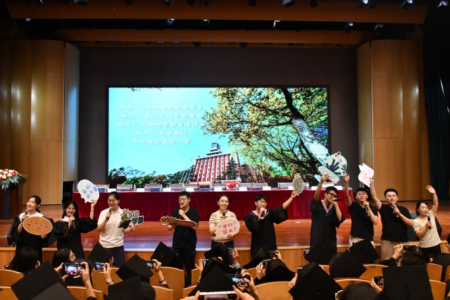凤凰花开,离别之时。学院领导班子合唱《再见》,为毕业生送上道不尽的离别、诉不完的留恋和最真诚的祝福与期盼;林春泽老师、于凌蛟老师、张宁老师倾情演唱的俄、西、英多语种歌曲,带领同学们重回外院燃烧的青春岁月。典礼在辅导员老师和毕业生代表合唱的《不说再见》中圆满结束。此刻我们为青春加冕,明日将奔赴五湖四海,向未来出发。