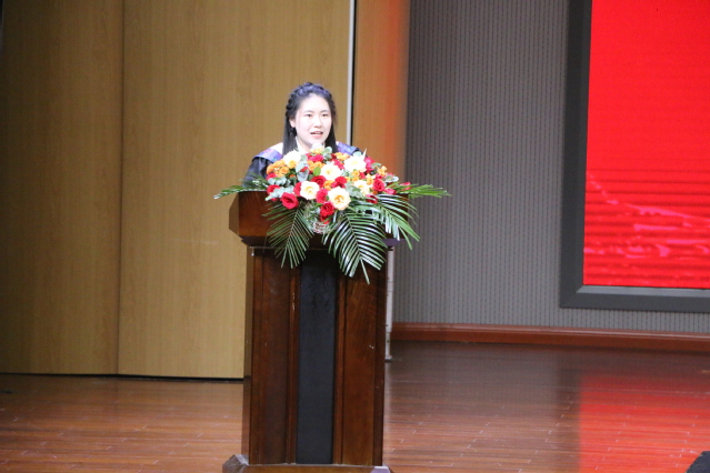 毕业生代表通过原创朗诵《给毕业生的诗》,分享了自己在师大外院学习生活的点滴,表达了“今此一别,当踏实奋进,无愧青春梦想;他乡再遇,盼桑田沧海,依旧朝气蓬勃”的决心。