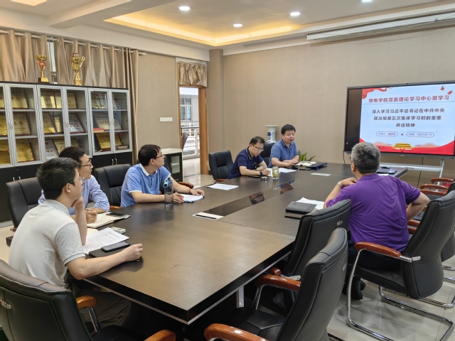2023年6月19日上午,物电学院党委理论学习中心组在学院325会议室开展6月份专题学习。物电学院党委理论学习中心组成员参加学习,本次学习由副院长魏明生领学。