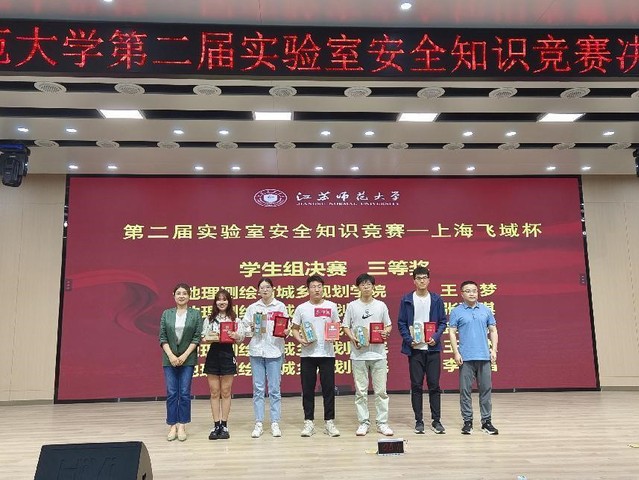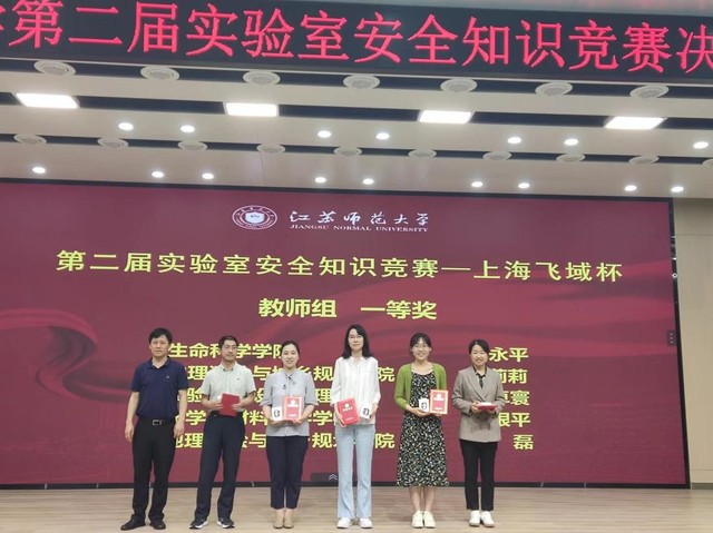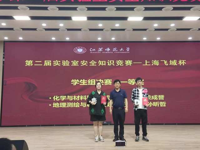 6月19日下午2:30-4:30,第二届实验室安全知识竞赛决赛——上海飞域杯在江苏师范大学路演大厅成功举办,我院共有6名学生进入决赛,最终喜获一等奖1项,三等奖5项,同时刘莉莉老师和谢磊老师也获得了教师组的一等奖的好成绩。