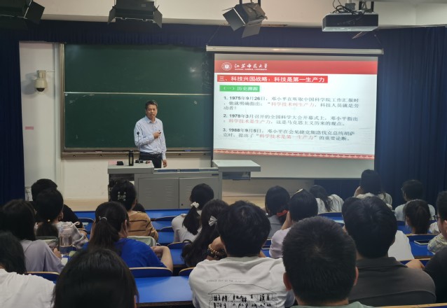 根据学校和学院学习贯彻习近平新时代中国特色社会主义思想主题教育统一安排,6月25日18:30,学院党委书记王香善教授在19#113教室以“科教兴国‘三个第一’重要思想”为题讲授专题党课。化学与材料科学学院全体学生(含研究生)党员参加了党课。