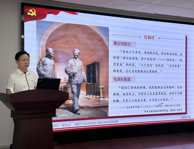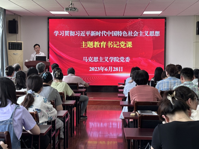 6月28日下午,马克思主义学院党委书记沈道海在302报告厅以“新时代党的自我革命”为题讲授专题党课,其所在支部的党员教师和全体学生党员参加了党课。
