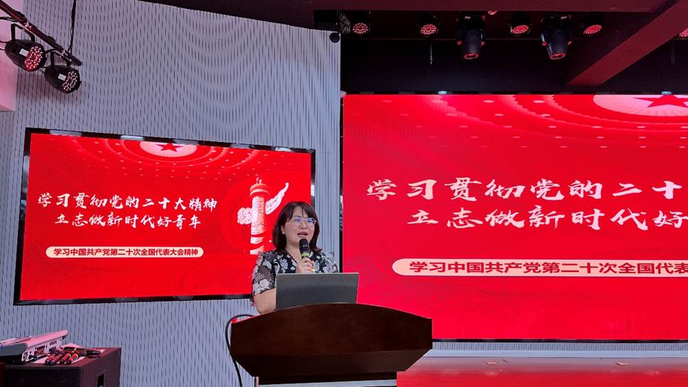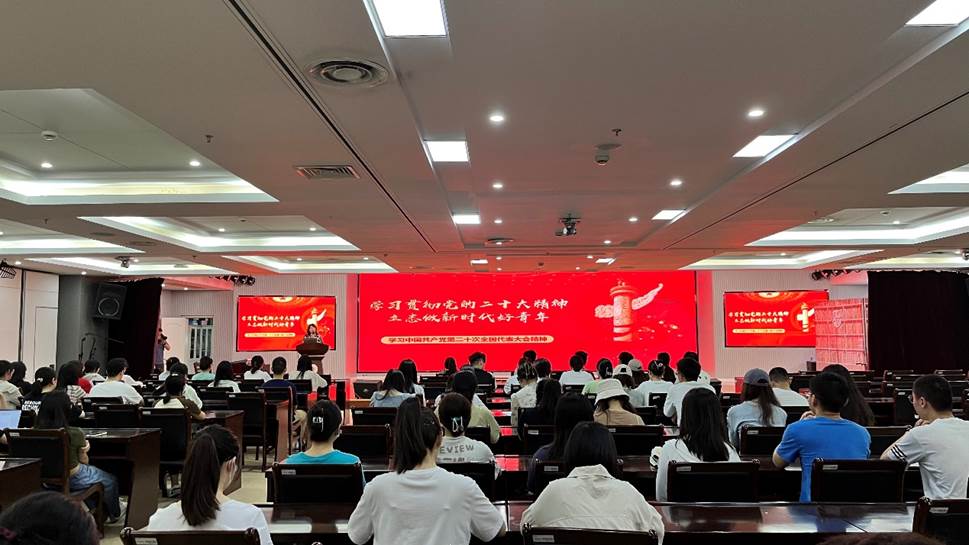 党课主要从“党的二十大报告内容”“习近平总书记与青年”“立志做新时代好青年”三方面展开,通过报告分析、案列列举、影音资料播放等形式,生动而详细的解读了党的二十大报告,并就“如何成为新时代好青年”这一时代命题与学生党员们进行了交流和探讨。