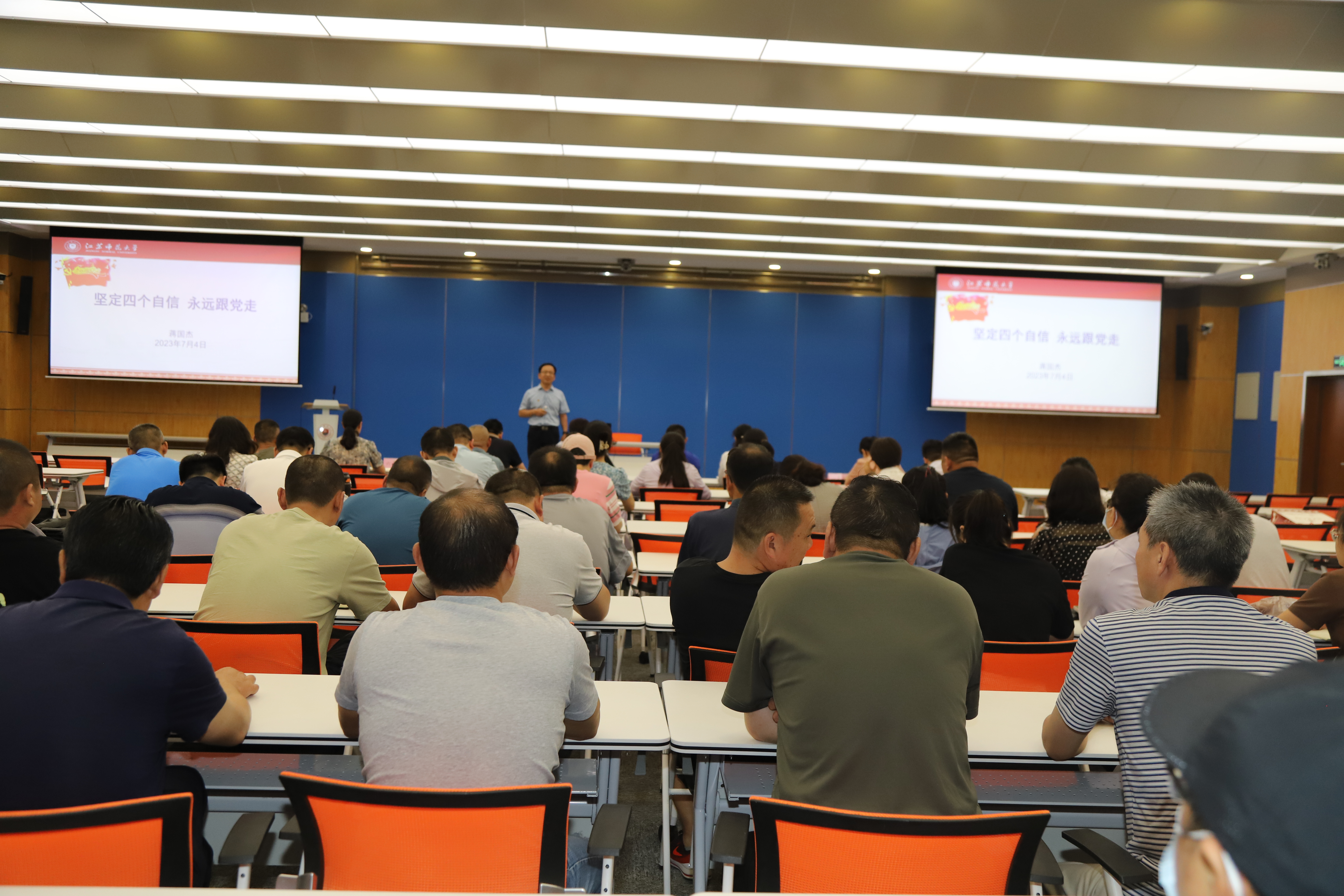 为深入开展主题教育理论学习,引导集团党员同志“学思想、强党性、重实践、建新功”,7月4日下午,后勤集团举办主题教育专题党课,集团党委书记蒋国杰以《坚定“四个自信” 永远跟党走》为题为全体党员讲党课。