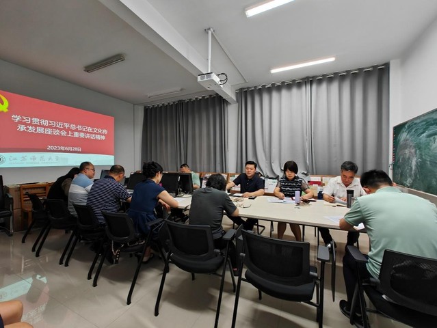 6月28日下午,文学院教工第四党支部召开专题会议,学习贯彻习近平总书记在文化传承发展座谈会上的重要讲话精神。会议由支部书记文晓华主持。