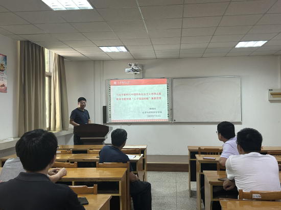 学院领导班子成员深入各支部开展主题党课。乔亏副书记以“牢记嘱托、踔厉奋进”为主题为行政支部讲授专题党课,并提出要求,希望行政支部全体党员通过主题教育学习进一步提高理论水平,将党建工作和业务工作相结合,立足学校学院事业发展,进一步强化调查研究,积极谋划学院发展蓝图,进一步提高保障水平和能力,做好学院教学科研保障工作及各项管理工作;韩锡光副院长以“人才强国战略”为主题,通过读原著、悟原理,并结合学院实际展开授课;王守成副院长以“学思悟践习近平总书记关于安全生产的重要论述”为主题,再一次强调实验安全无小事,必须树牢安全发展理念,必须把责任牢牢扛在肩上,必须强化风险防控、从根本上消除事故隐患。