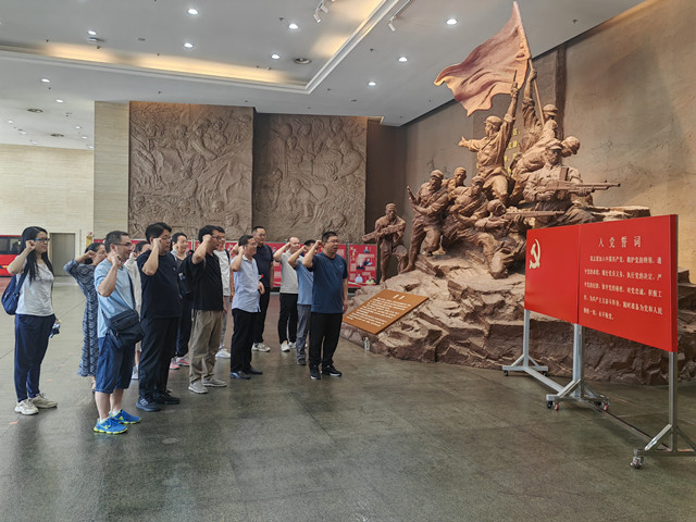 进入沂蒙革命纪念馆,党员们先是在党支部书记带领下,面向党旗,举起右拳,重温入党誓词,深切体会作为一名共产党员的责任感和使命感。然后,党员们进入展厅进行参观。通过一幅幅历史图片、一件件革命文物和一段段文献资料,深入了解了沂蒙革命前辈的英勇事迹,深刻感悟“党群同心、军民情深、水乳交融、生死与共”的沂蒙精神内涵。随后,党员们前往相邻的华东革命烈士陵园凭吊先烈。园内青松傲立,翠柏挺拔,党员们在革命烈士纪念塔前肃立默哀,缅怀革命先烈的丰功伟绩。