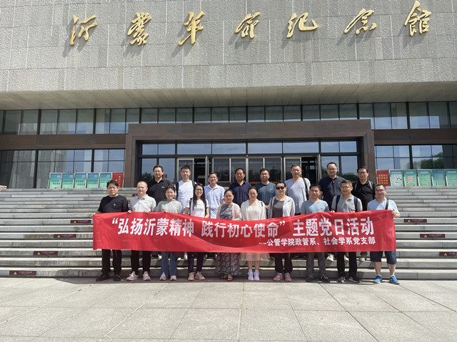 为深入开展学习贯彻习近平新时代中国特色社会主义思想主题教育,进一步锤炼党性和提高政治素养,7月1日,公共管理与社会学院政管系党支部和社会学系党支部,联合组织党员前往山东省临沂市开展“七一”主题党日活动。
