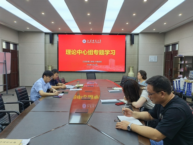 7月10日上午,江苏圣理工学院-中俄学院在学院525会议室开展理论学习中心组第五次专题学习。会议由学院党委书记冯遵永主持,领导班子成员、教师党员代表参加。