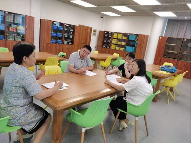 为进一步落实立德树人根本任务,贯彻课程思政基本理念,按照研究生院的统一安排,教育科学学院于2023年7月4日下午3时举行研究生课程思政示范课程展示会。胡晓艳教授及其团队在26#104室进行《幼儿课程理论与实践》课程的展示,学院副院长王娟教授、学前教育系副主任刘迪博士、师远贤副教授、刘艳玲老师,以及课程团队核心成员李广政副教授参与了研讨。