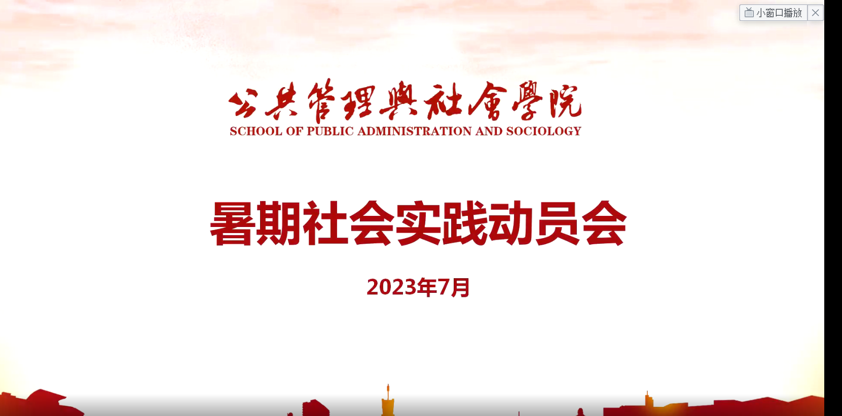 7月13日上午10:00,公共管理与社会学院团委线上召开2023年度大学生暑期社会实践动员大会,院党委副书记杨仲迎老师、团委书记陈妍老师、各实践团队负责人、宣传员参会。