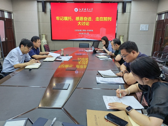 7月14日下午,江苏圣理工学院-中俄学院在学院525会议室开展理论中心组第六次专题学习暨主题教育大讨论活动。会议由学院党委书记冯遵永主持,领导班子成员、党支部书记参加。
