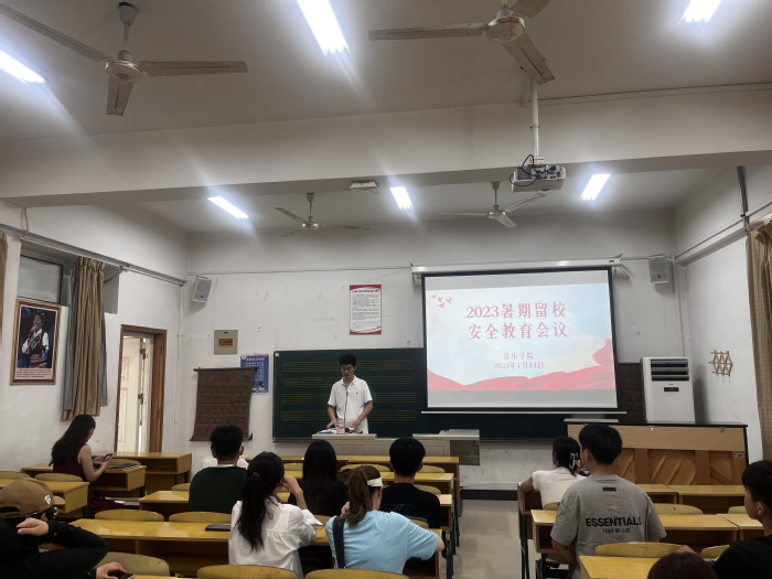 为进一步落实暑期留校学生教育管理工作、筑牢留校学生的安全屏障,7月14日下午,我院于24号楼101A组织召开留校学生安全教育大会。院党委副书记夏雯、辅导员经曼、张世懂、王艺璇出席会议,全体暑期留校学生参会。