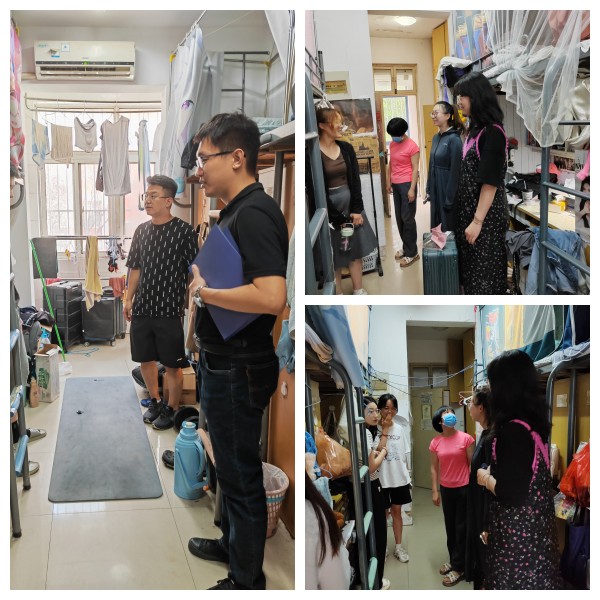 深入宿舍过程中,全体学工人员认真查看了学生宿舍安全和卫生情况,提醒学生离校前关闭水源、电源及门窗等;督促学生注意出行安全、住宿安全、财产安全、消防安全和信息安全,提醒学生要牢牢树立宿舍安全意识,要做好防火、防汛、防盗、防诈骗等工作;针对个别宿舍存在的问题,提出改进措施。同时老师们与暑期留校学生进行了交流,了解他们的学习、生活安排,提醒同学们暑假期间如有任何生活困难可随时向学院反映,加强交流沟通。