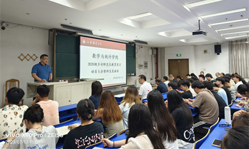 为促进实习工作顺利展开,2023年7月13日下午,数学与统计学院在泉山8#J202教室召开2020级乡村师范生教育实习动员大会暨师生见面会,教学副院长张超、实习指导老师及2020级乡村教师班的89名同学参加了此次会议。