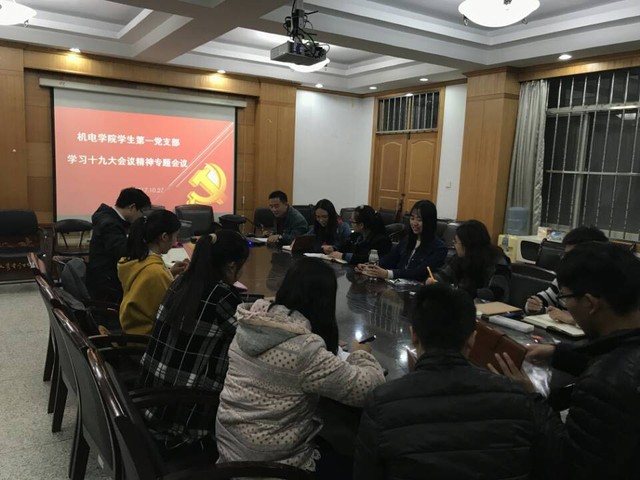 为了深刻领会十九大精神,用新理论新思想武装学生党员的头脑,2017年10月27日机电工程学院学生第一党支部在田家炳工学院会议室开展了学习十九大精神专题活动。党支部书记侯秀杰老师和学生第一党支部全体学生党员参加了本次活动。