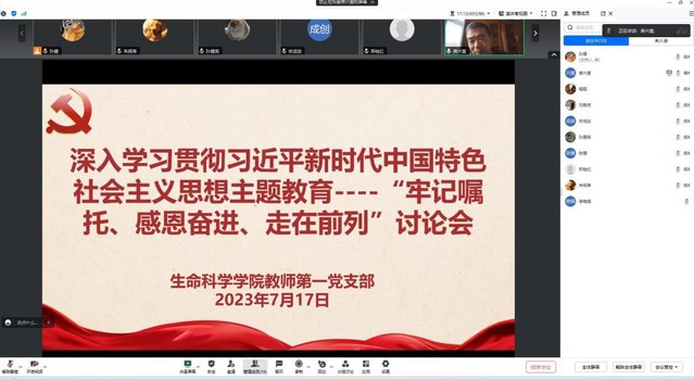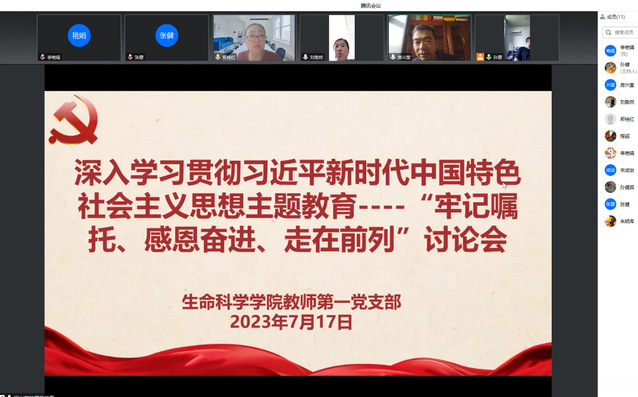 7月17日生命科学学院教师第一党支部召开“牢记嘱托、感恩奋进、走在前列”讨论会,会议由孙健老师主持,支部书记房兴堂老师介绍了本次大讨论的背景、意义和要求。
